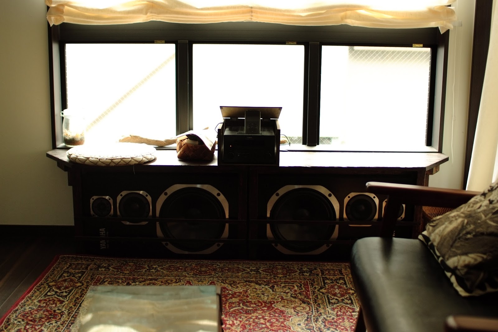 ちなみにスピーカーの外側が覆われてしまうことで音質が少し変わります(籠もる)。コンポのイコライザをいじって調整しておきましょう。