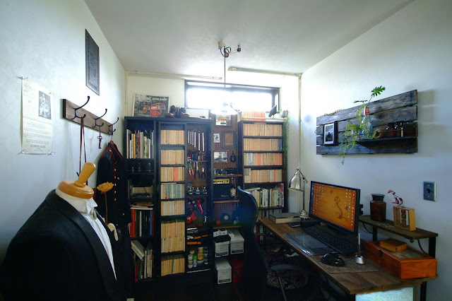 本棚と本棚の間から出したタップは、主に工具用。