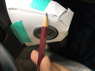 これを頼りに、コンパスカッターを使ってコピー用紙でざっくりした型紙を作り、マスキングテープテープで固定。