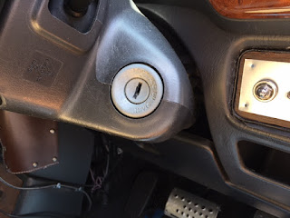 イグニッションキーのシリンダー(鍵穴)がなんか古びてきてるし、コラムカバーの継ぎ目が向きだしなのもなんか寂しいなぁ、と。