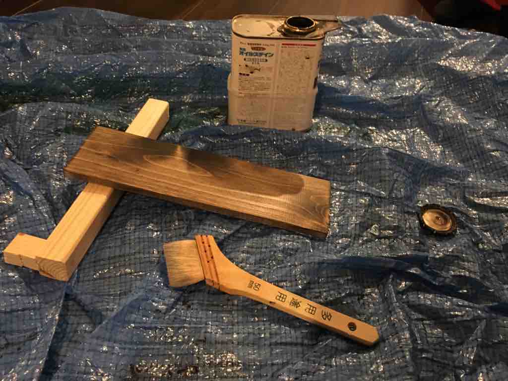 表面を軽く400番のヤスリで整えたら、水性ステインで着色。