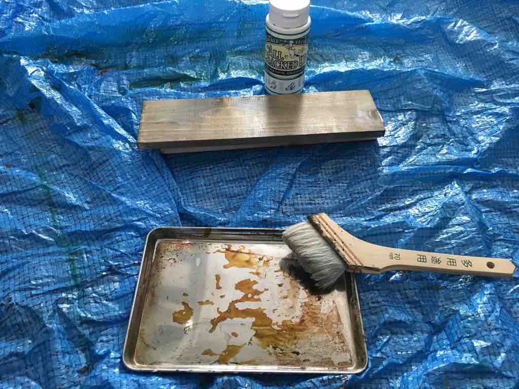 ひび割れ塗装は指で触るとパラパラ落ちてくる場合がありますが、これを塗っておけば、塗装剥がれがおきにくくなります。