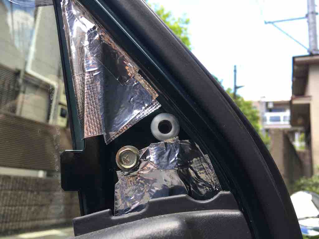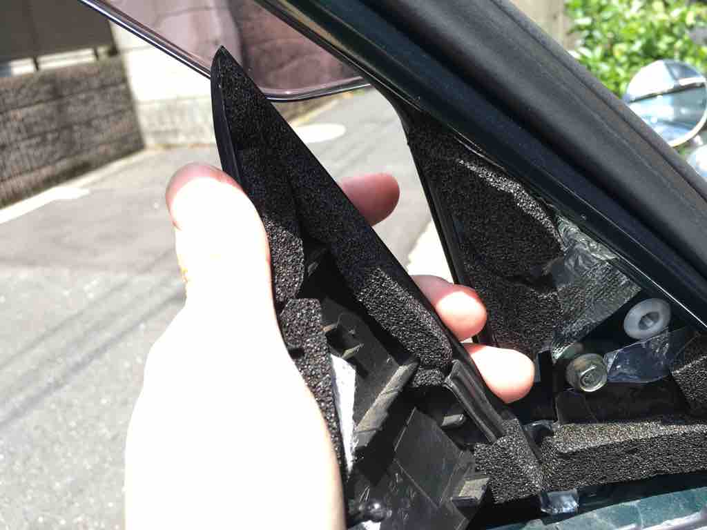 原因は、ドアミラー跡の穴を塞ぐ目隠しパネル。