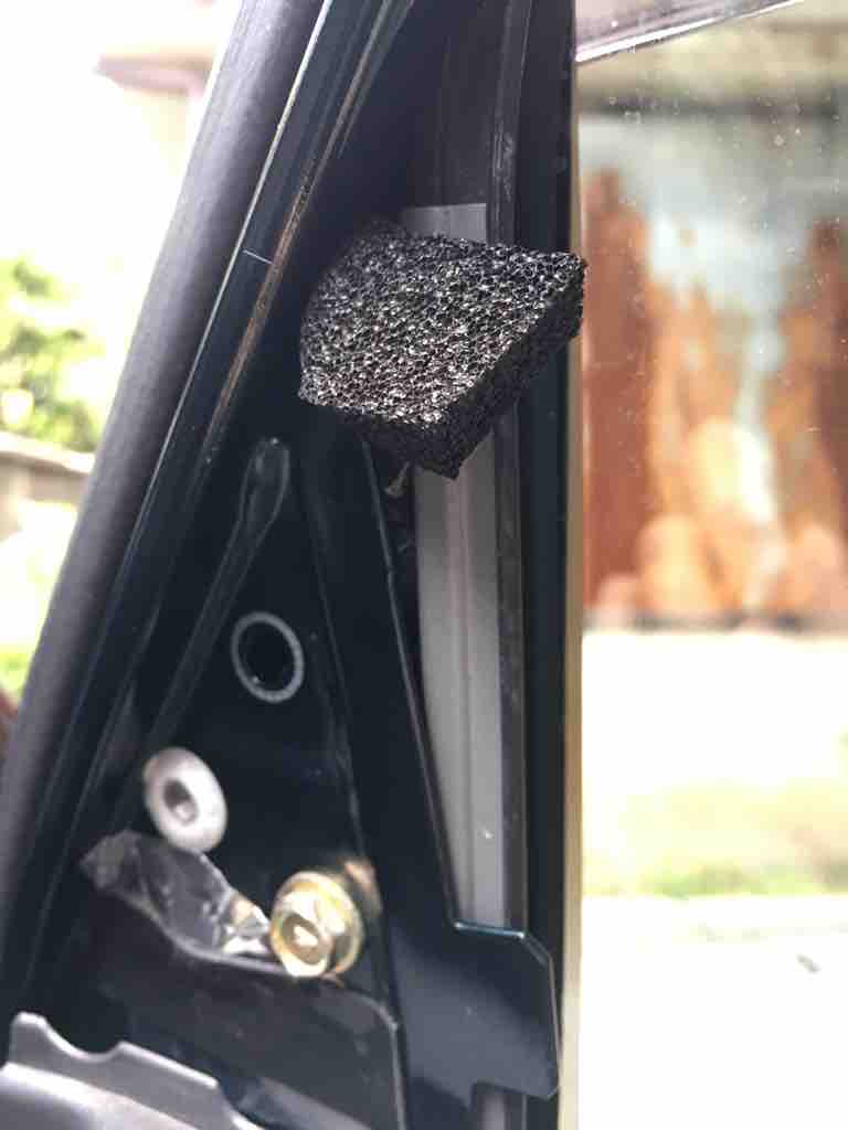 上側は、窓と干渉しない厚みのスポンジゴムを細く切って、両面テープで貼り付け。